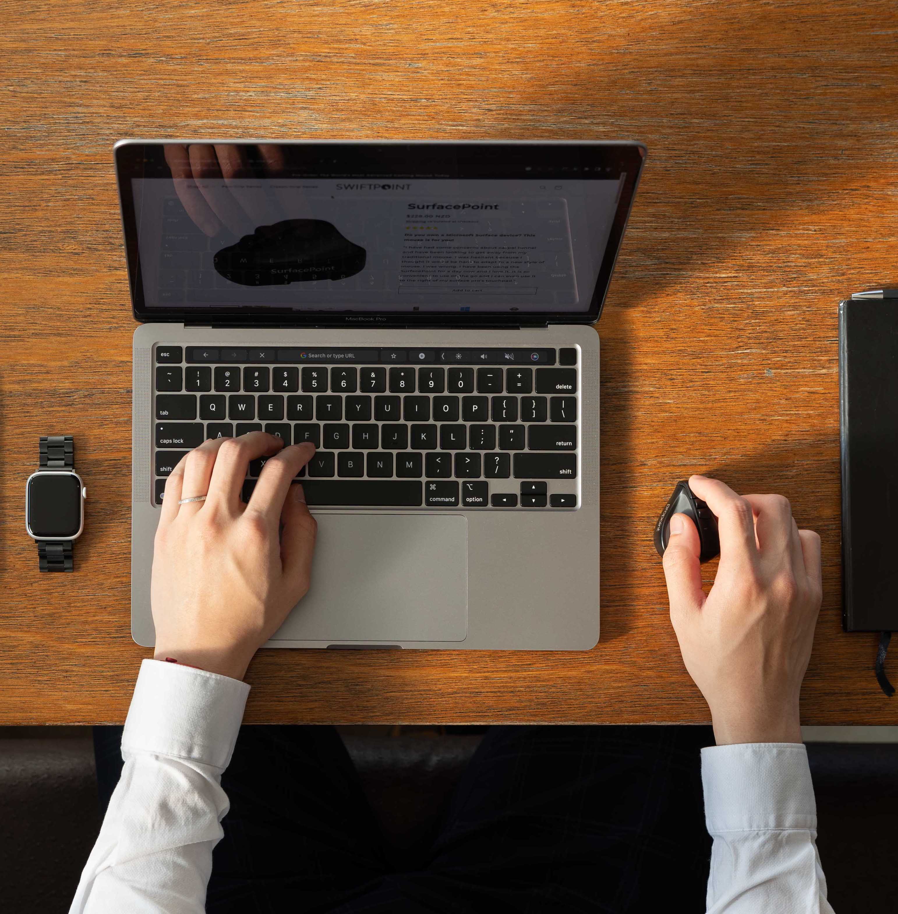 " Been dealing with repetitive stress issues for years. Tried everything without relief. Then found Swiftpoint. Problem solved. Been using it for 3 months. No more hand pains and I use a computer ~12 hours a day (programming), so heavy user. "