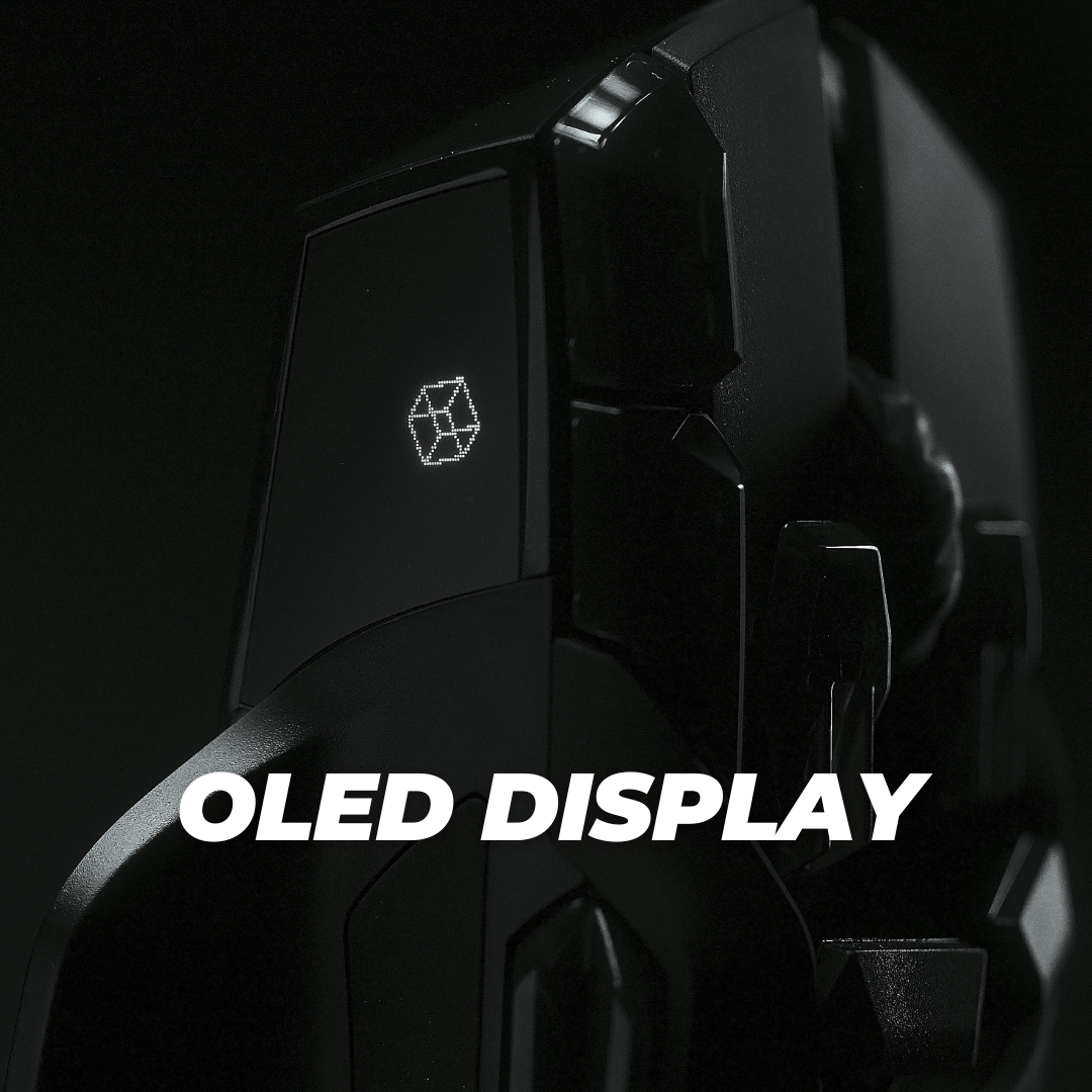 Show profiles, DPI settings, battery level and connection. Activate config mode on your OLED screen with the lift of your mouse to intuitively change DPI levels and adjust custom configurations.